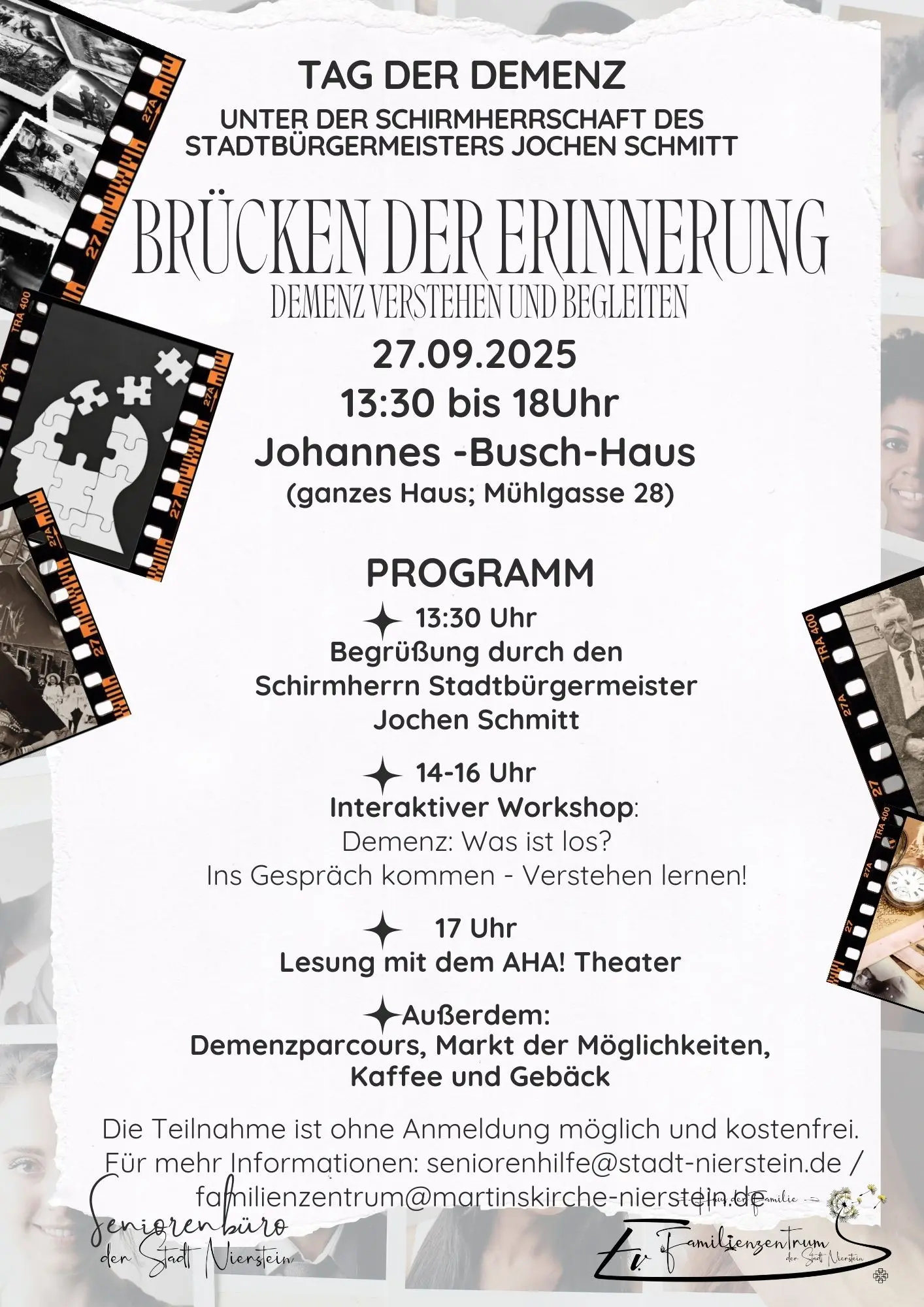 Anmeldung unter: Haus der Familie - Evangelisches Familienzentrum der Stadt Nierstein, familienzentrum(at)martinskirche-nierstein.de, 01606808608; Seniorenbüro der Stadt Nierstein, seniorenhilfe(at)stadt-nierstein.de, 01515 444406