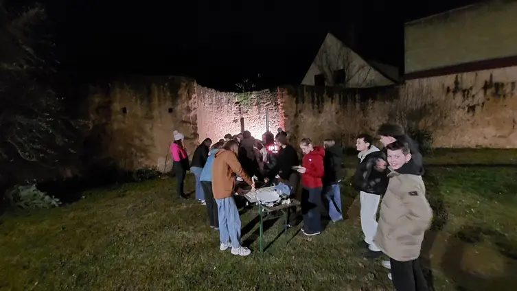 Konfirmandinnen und Konfirmanden bereiten die Stolperstein-Verlegung für ein Opfer der NS-Krankenmorde in Nierstein vor